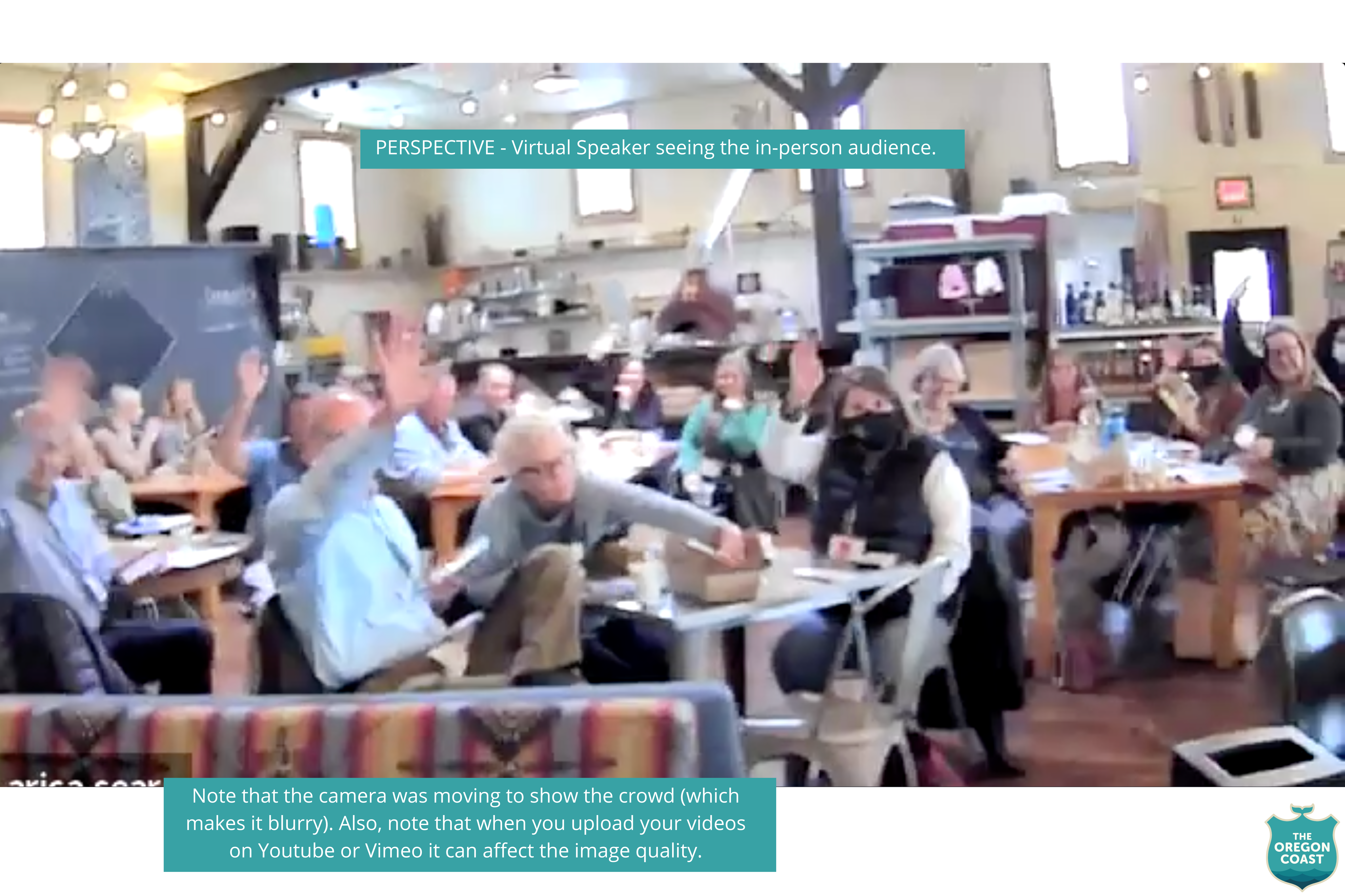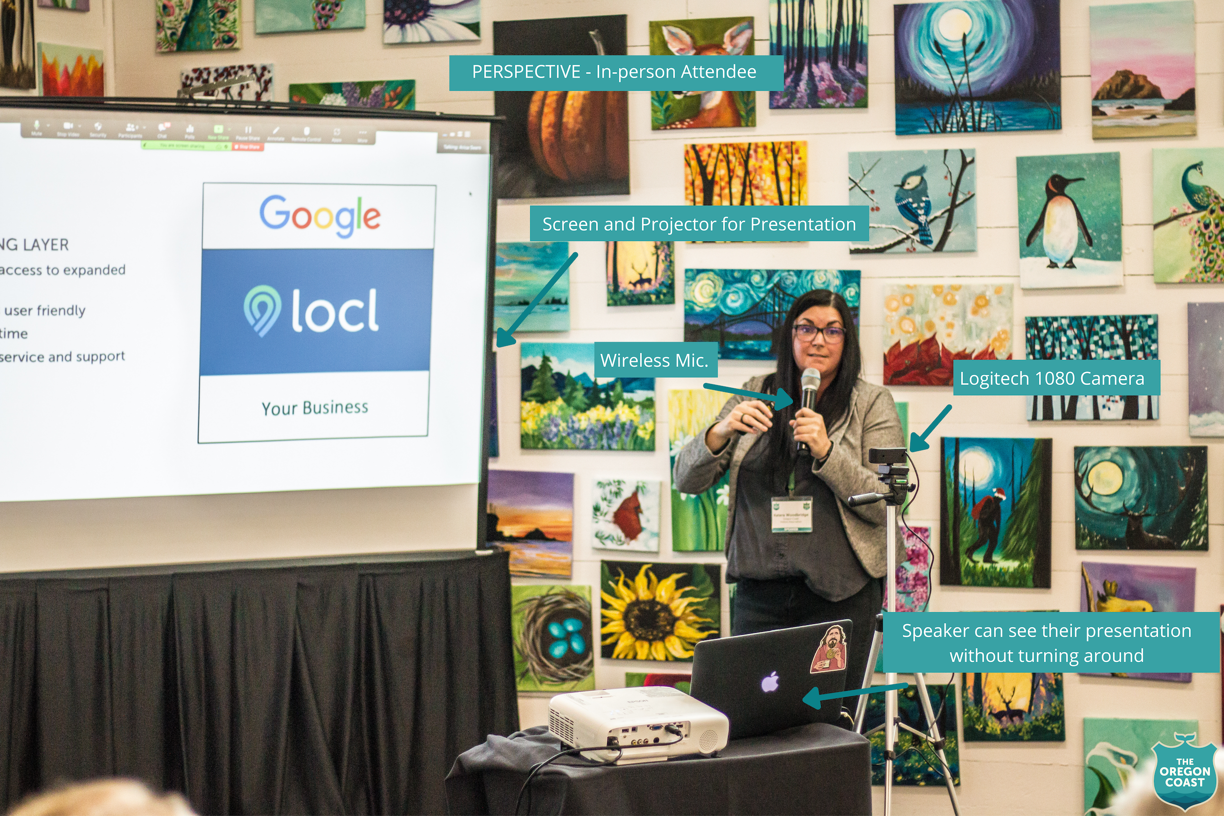 We had our general sessions at Front Street Provisioners and our breakout workshops at the Coos History Museum, Josie’s Art Lab and City Hall Chambers. As you can imagine, we were working with a variety of venue types. First and foremost we needed to be sure there was a strong internet connection via wifi or mobile hotspot).
