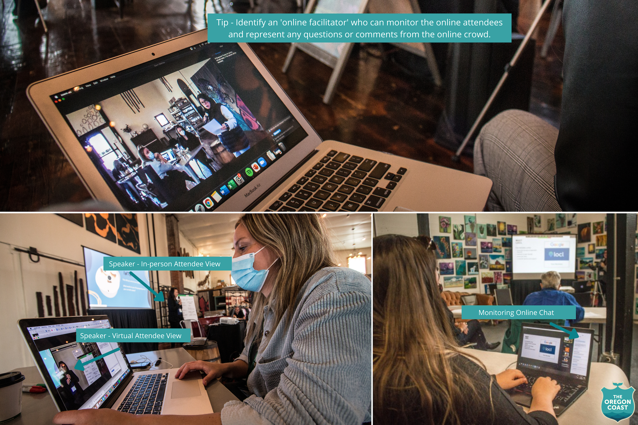 - Software – Managing online attendees while also organizing in-person attendees takes careful planning so selecting a software you are comfortable with will be key.